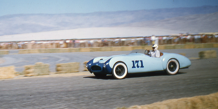 Thanks to the efforts of Tom Householder, a fine friend of fiberglass for many years, we have a rare treat – a panorama of the start of a race back in 1956 – and square in the middle of the panorama is one of our favorite cars….