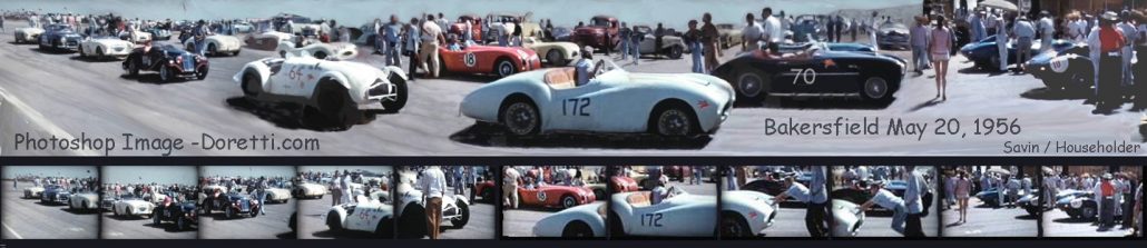 “This is a panorama I constructed from the Savin family DVD of the Bakersfield races held May 19-20 1956. This is the grid for the final race on Sunday. There’s a little bit of everything in this race. I believe there are five Specials in this race, as follows: