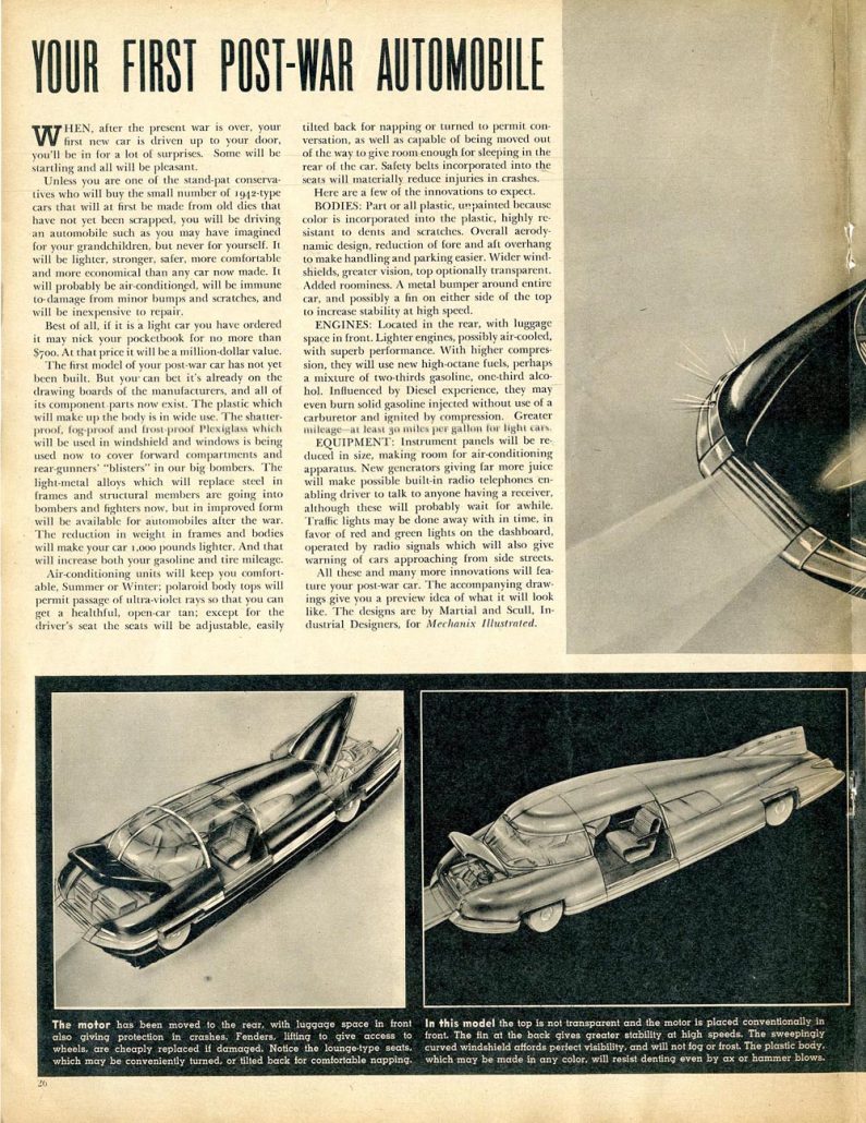 Unless you are one of the stand-pat conservatives who will buy the small number of 1942-type cars that will at first be made from old dies that have not yet been scrapped, you will be driving an automobile such as you may have imagined for your grandchildren, but never for yourself.