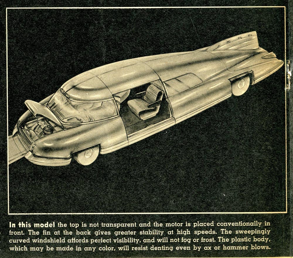 Here It Predicts, “The Plastic Body, Which May Be Made In Any Color, Will Resist Denting Even By Ax Or Hammer Blows.”