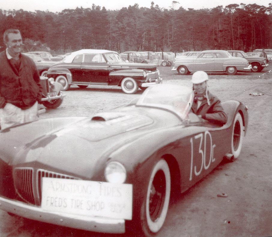 Recently, I received a photo from Frank that was taken at the Pebble Beach Race in 1953. Here’s what Frank wrote on the back of the photo: