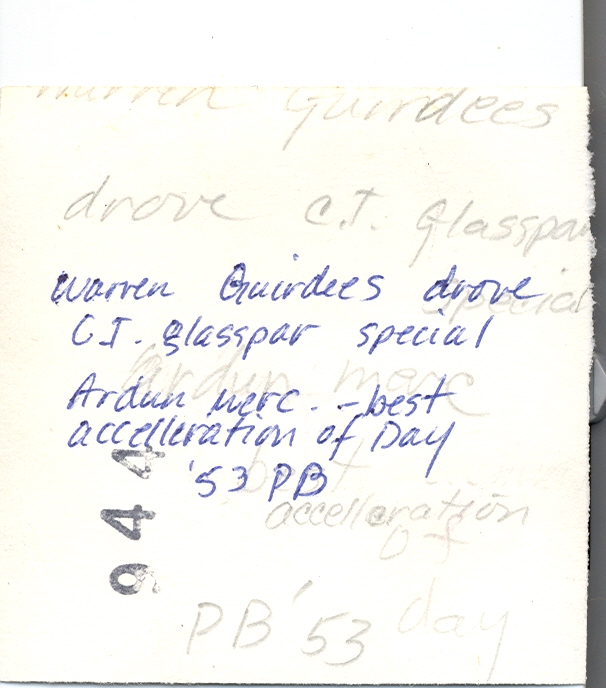 Here’s Mike Wittman’s Picture Taken at PB in 1953. Mike Noted On The Back of the Picture That The Glasspar G2 Ardun Mercury Had The Best Acceleration of the Day.