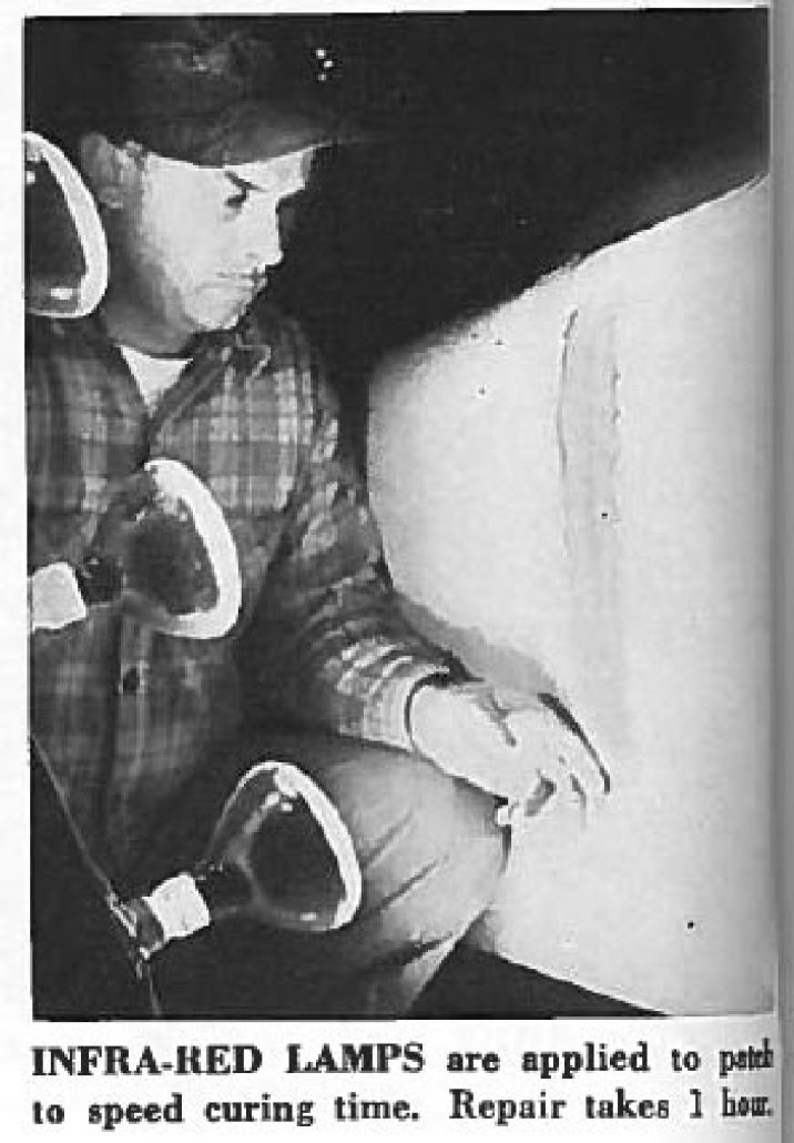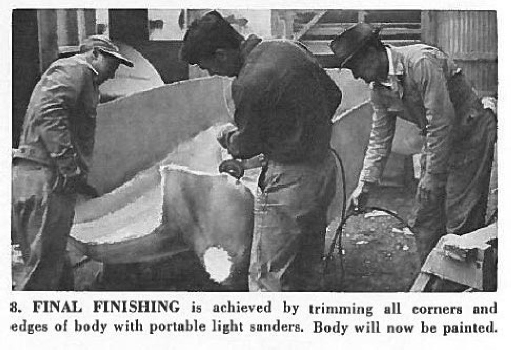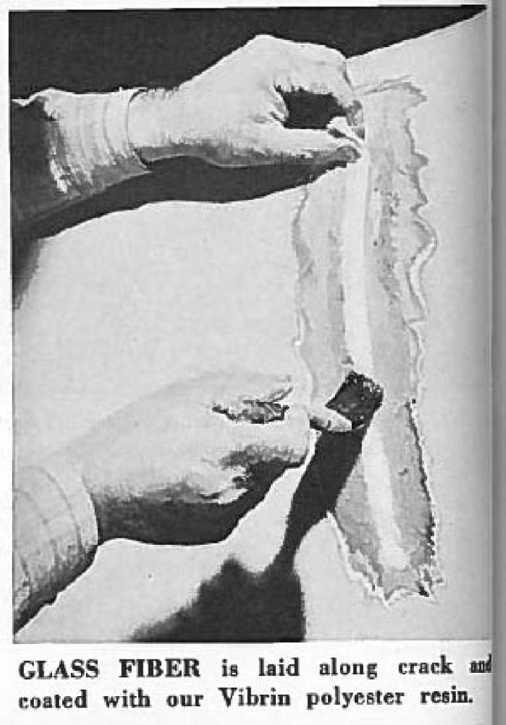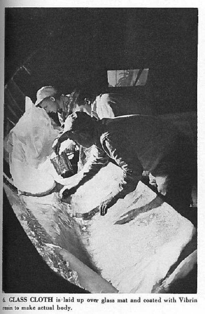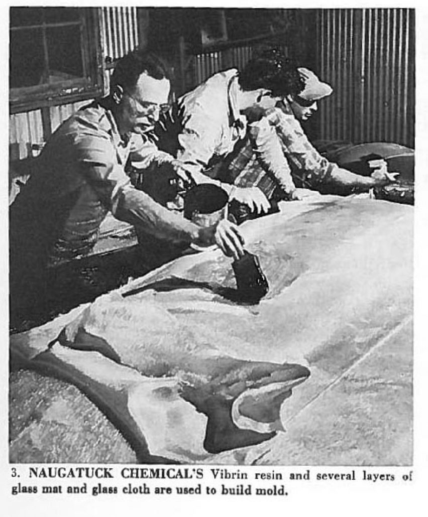 The polyester plastic they used is the familiar Vibrin manufactured by our Naugatuck Chemical division. Dr. Earle S. Ebers, sales manager for Vibrin plastic, worked in close cooperation with Glasspar during the initial stages of production.
