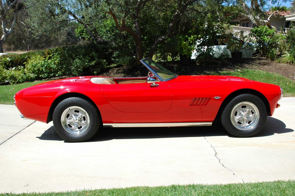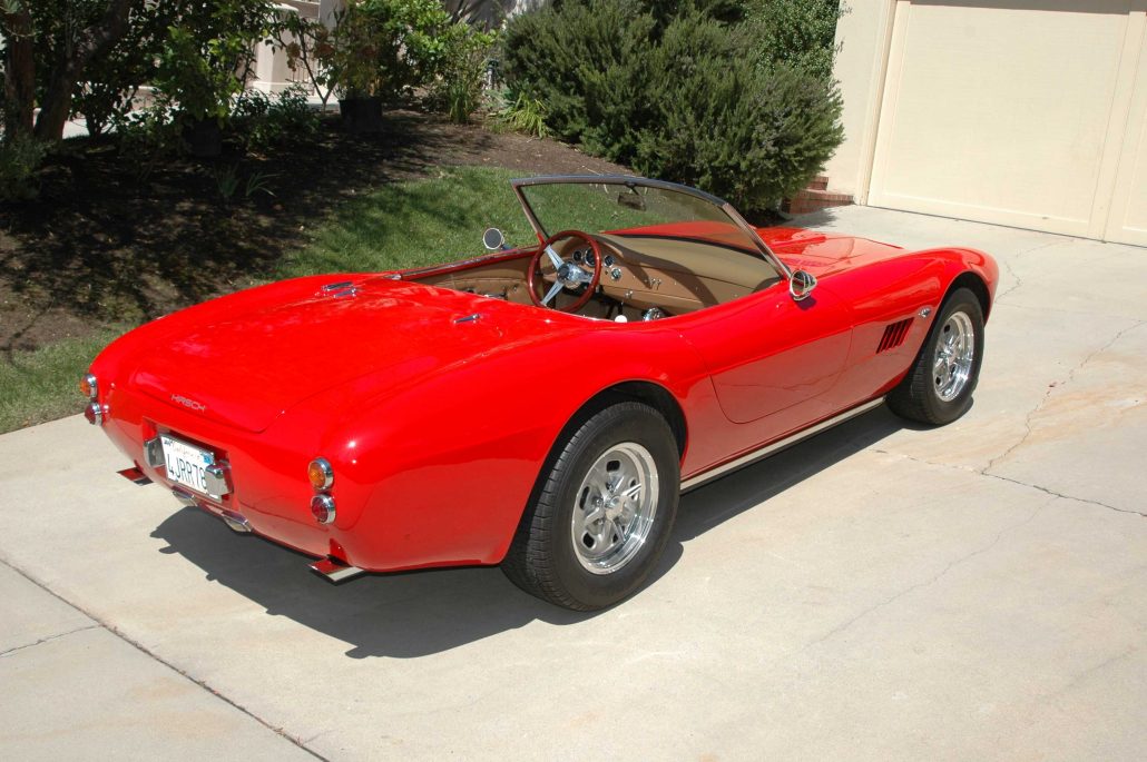 The car has a hand laid fiberglass body, with a tube frame. The front end and steering are Fiero, the rear is Datsun 280Z. Engine is a 1966 Mustang 289 V8 four barrel, with Ford 5 speed trans. It titled as a 1960 Hirsch.