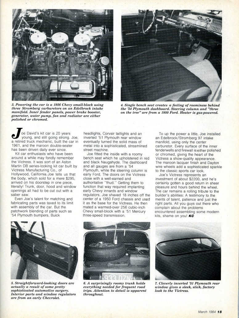 Let’s take a look at the article that was originally posted in Kit Car Magazine nearly 30 years ago about this car – the Joe David Victress C3 Special.