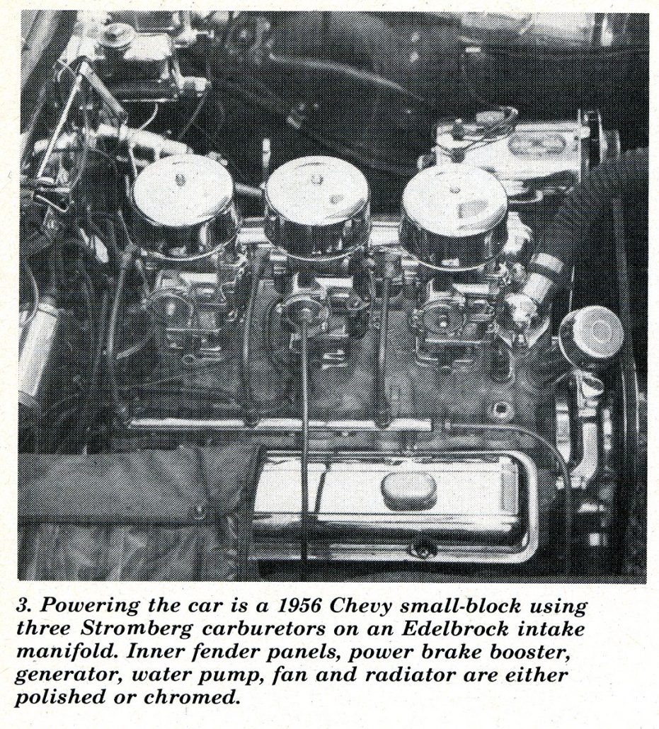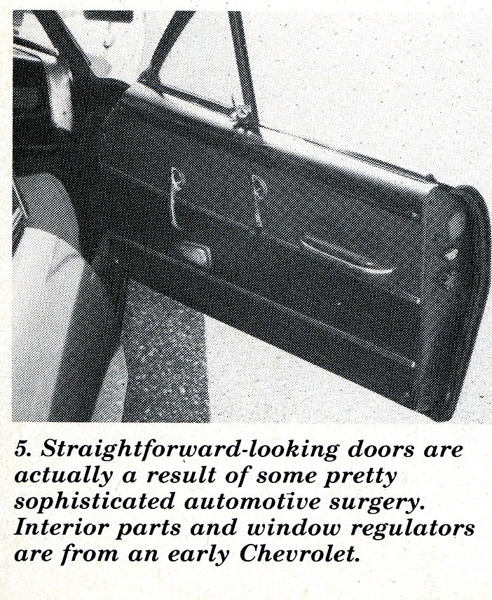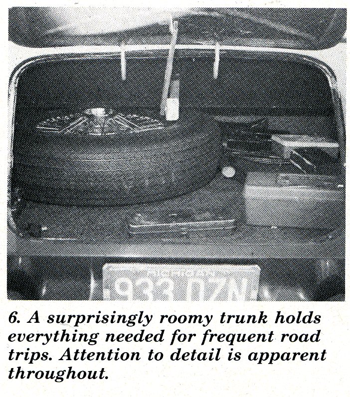 Joe tells us that the body, which sold for a mere $295, arrived on his doorstep in one piece, literally! Trunk, door, hood and window openings all had to be cut out with a saber saw. Even Joe’s talent for matching and fabricating parts was taxed to its limit with assembly of the car.