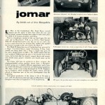 I’ve not written about these before, and they were primarily used for racing and sporting events. But I came across an interesting article today, in the October 1957 issue of Road & Track. This has to be one of the first articles on Jomar because it shows the aluminum bodied car, and discusses future bodies being available to the interested party in aluminum and fiberglass. Sounds interesting gang.
