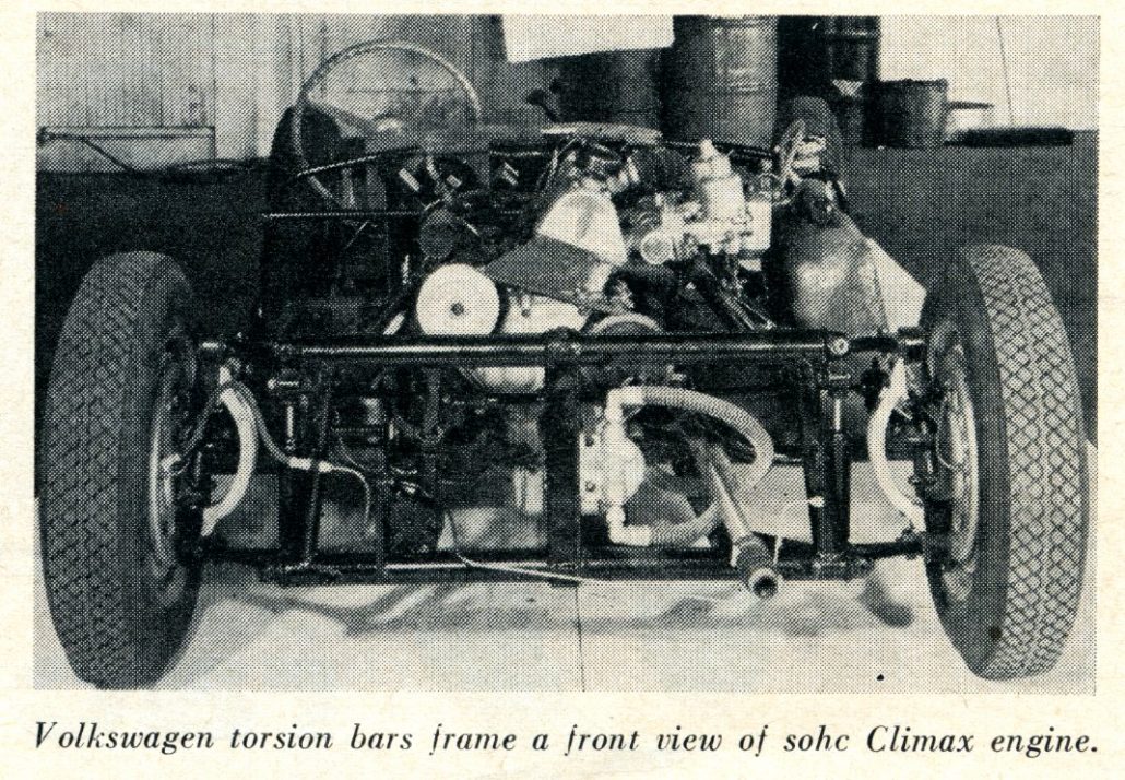 - Caption: Volkswagen torsion bars frame a front view of the Climax engine.