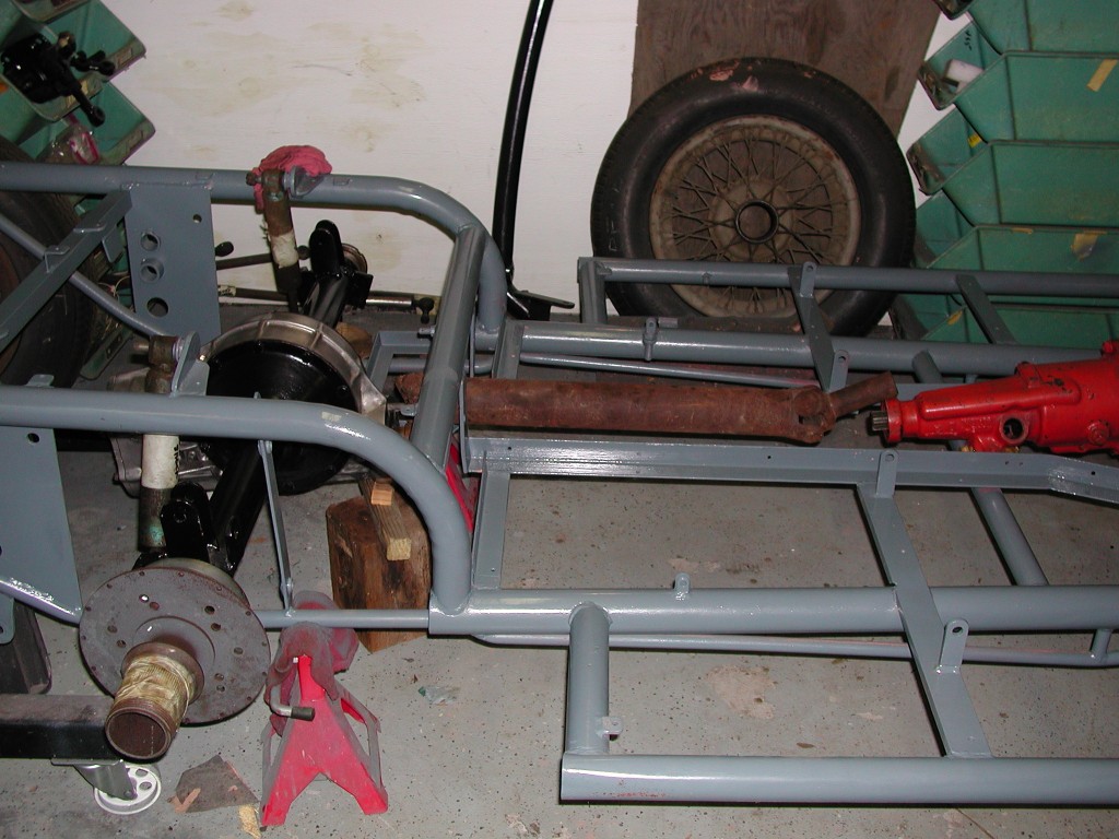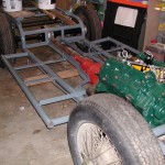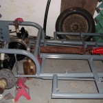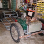 As compared to most of the Allied Coupe Sports Cars of the time which simply slipped onto an MG chassis, his was largely two mild steel tubes (hand bent) stiffened by a long 1” V shaped truss rod on each side. The front and back suspensions were cross torsion bars and very similar to a Kurtis chassis (Kurtis chassis used crossed bars; Jud’s were straight). Lateral stabilizing at the back was a device called a Jacob’s Ladder.