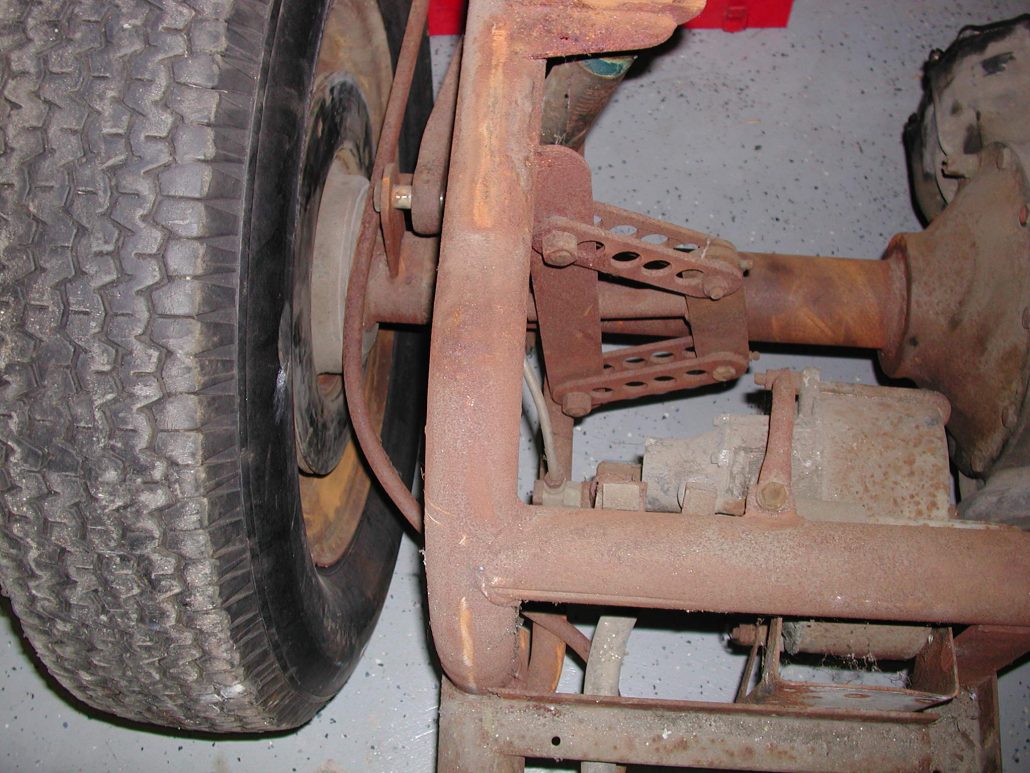 Rear differential ratio could be varied through the Halibrand quickchange rear end (Jud used a Champ version produced before 1950). Brakes were also Halibrand spot disks as used on the track. Even the wheels were Kelsey Hayes track wheels, an odd 60 spoke arrangement with a track type knock off.