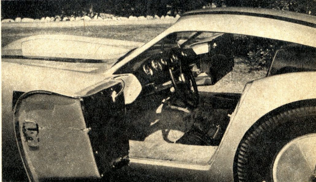 Kellison also markets a smaller coupe and two sizes of aerodynamic roadster. He’s one of the swingingest guys we’ve ever met: watch him for brilliant new ideas. All Kellison bodies are built of two ounce fiberglass matte sandwiched between ten ounce cloth. A 250 lb man can walk on them and do not harm; he can sit on the coupe’s top and it won’t deflect. The coupe, complete with all inner panels, hinge boxes and doors weighs just 160 lbs.