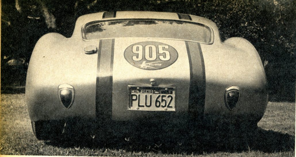 It’s one of the better known fiberglass sports cars of the late 1950’s and 1960’s, and I’m still searching for the first article that appeared on one of these cars. Today’s story appeared in 1959, but I’m sure there are earlier articles too. Time will tell. In any case, the author Griffith Borgeson was “mighty excited” about this car and his new found buddy – Jim Kellison.