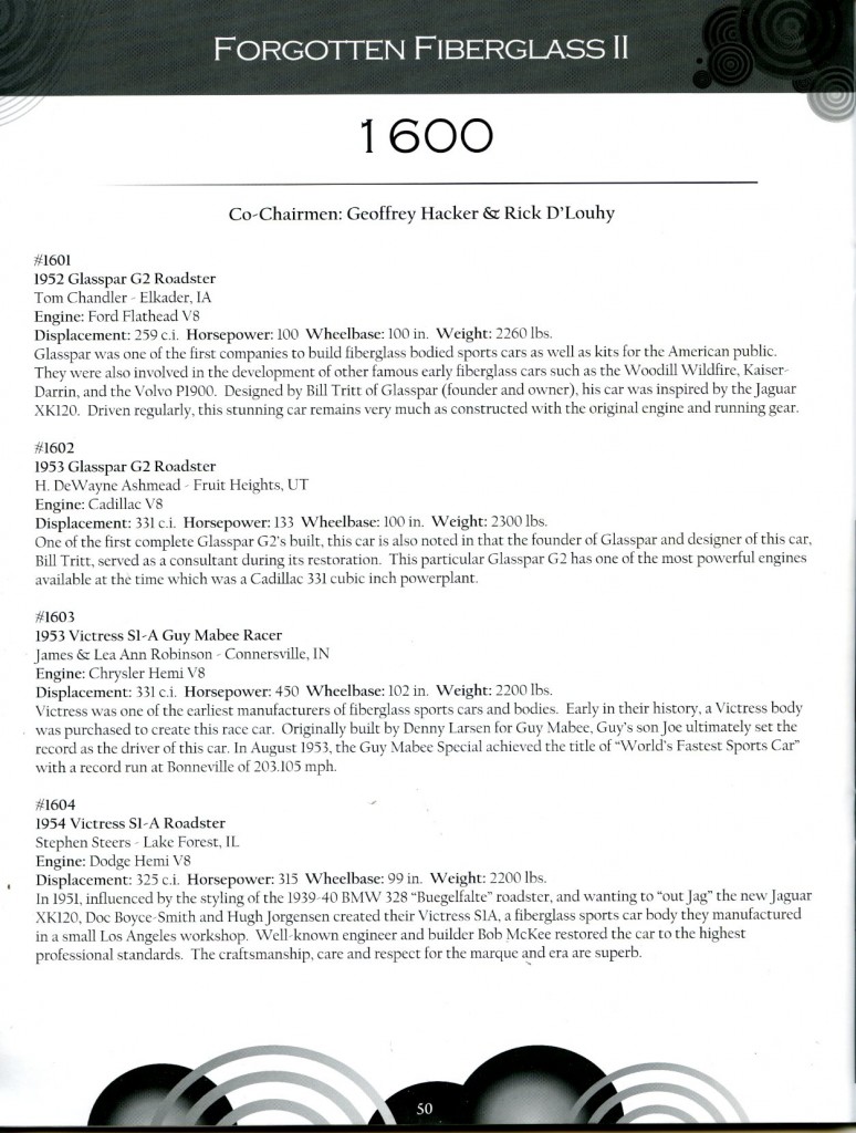 First Production Fiberglass Cars: The Brooks Boxer (Glasspar G2) was exhibited at the 1951 Los Angeles Motorama with three other plastic cars, i.e., Eric Irwins Lancer, Jack Wills and Ralph Roberts Skorpion and the Wasp, pioneers of todays plastic cars.