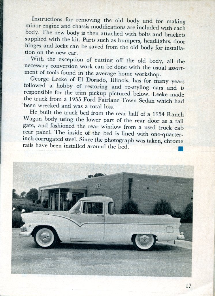 The body is said to be very strong and rigid, of high tensile strength, and capable of withstanding twisting action.  Instructions for removing the old body and for making minor engine and chassis modifications are included with each body.