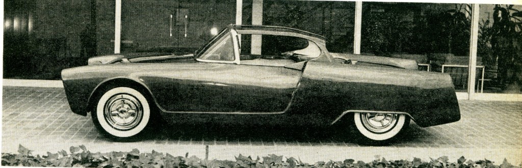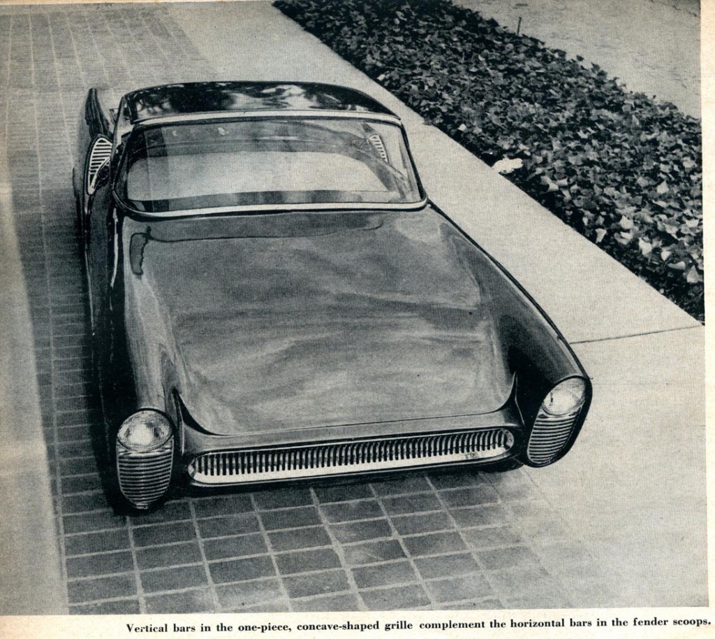 Not often do we come across a car with such an immediate eye-appeal as the fiberglass coupe shown on our cover and on these pages.  Displayed for the first time at the 1955 International Motor Revue show (also known as the Petersen Motorama) in Los Angeles last November, it was one of the cars that received a great amount of favorable comment for its originality in styling.
