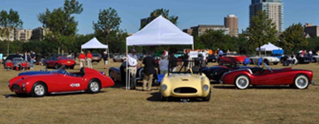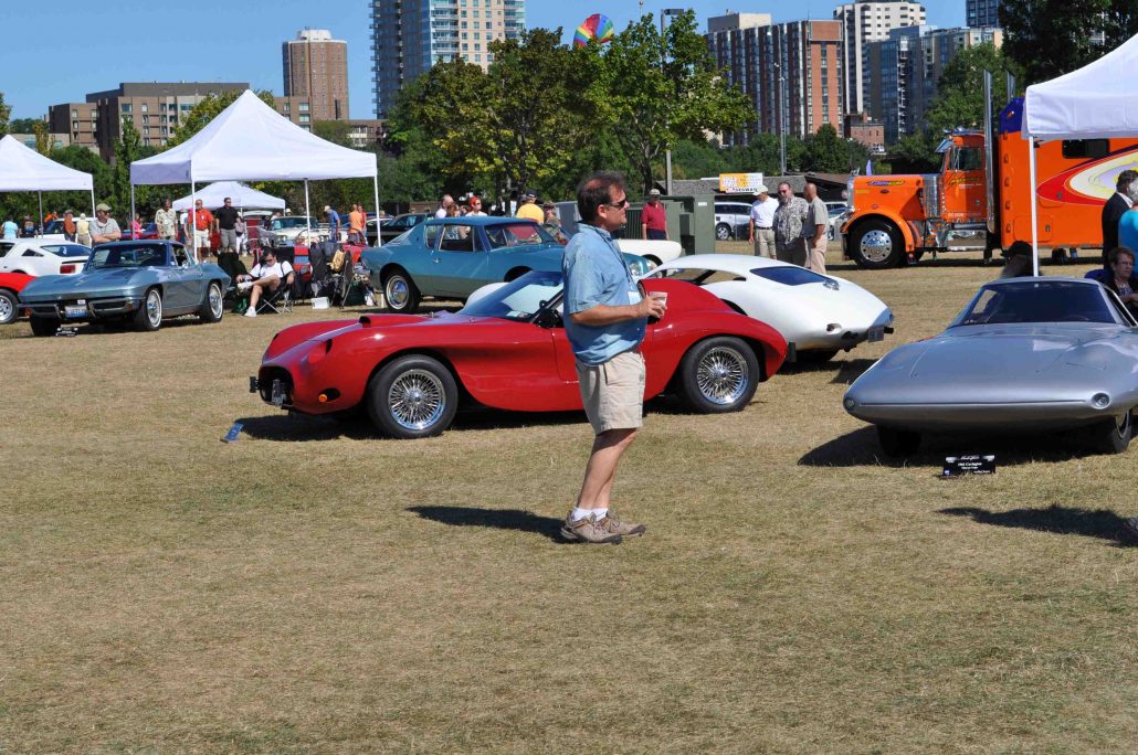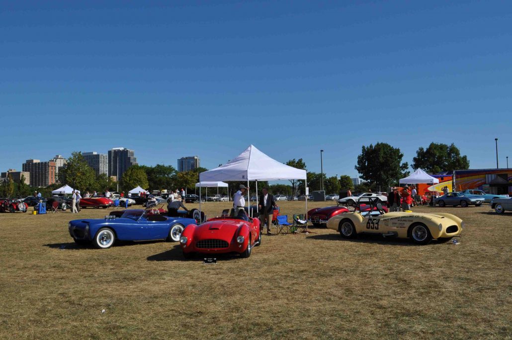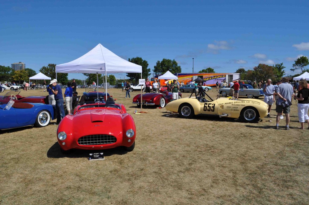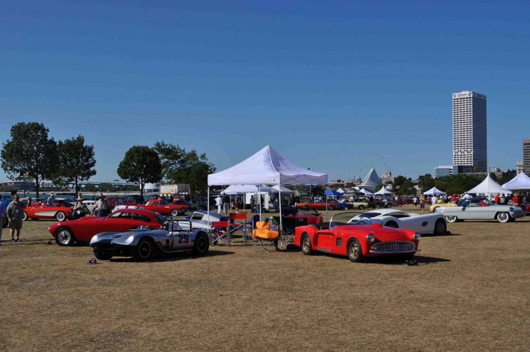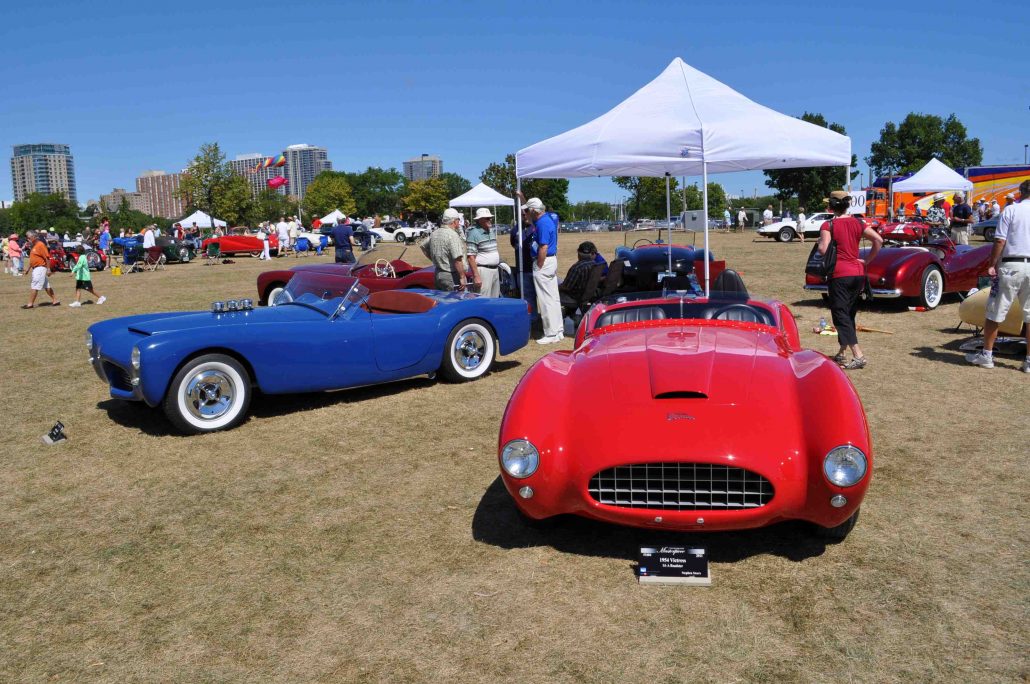 The Feature Classes of the Milwaukee Masterpiece were “Porsche” and “Fabulous Fiberglass,” and their setup for these “Feature Cars” was completely new to me. Our cars were arranged around 3 tents – 6 cars per tent. This corresponded to the 3 classes of fiberglass sports cars, and was a great way to provide a gathering place for the owners and a spectacular way to showcase the cars and give the public the greatest access possible.