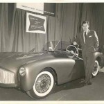 And….with the help of automotive historian extraordinaire Glenn Brummer, we have a picture of Herb Shriner, and the Glasspar G2 bodied Mota at the 1953 International Motor Sports Show here today: