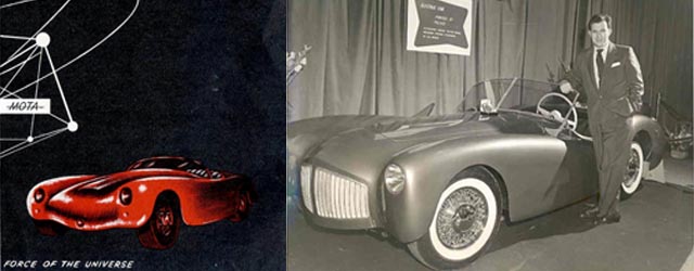 Mota: Bridging the gap between man’s first attempt at motorizing the wheel, and the futuristic visions of ultra-modern atomic cars of tomorrow, comes now America’s most truly spectacular motor car accomplishment – the amazing and miraculous MOTA!