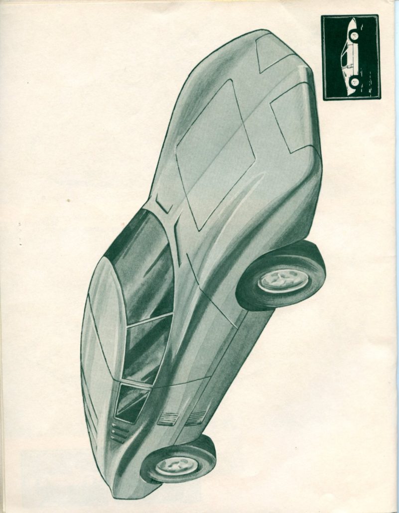 The first piece I found was an attractive ad that appeared in the March 1966 issue of Road and Track.  It shows 4 models of cars being offered but all are drawings – none are pictures of real cars.  The models shown in the ad are intriguing.  There are 3 coupes and a roadster.  As stated in their ad: