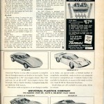 The date of this ad may ultimately be revealing.  One possibility suggested by Harold is that Universal Plastics may have been started by Bud Goodwin, and ultimately turned into Fiberfab.  Bud made his first appearance selling Mistral bodies in 1956, and that enterprise turned into “Sports Car Engineering” in 1957 before he sold the company to Du Crest Fiberglass in 1958.  I’ve always wondered what Bud did between 1958 and his Fiberfab years, and I continue to research this gap in history.