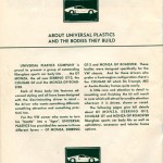 It seems that Universal Plastics Company had been seen by quite a few people back in the day, and the company certainly deserves a bit more research.  I haven’t delved much into the mysteries of the 1960’s.  So…as he’s done it before, Harold issued a challenge….see what our group can uncover about the history of this company and whether or not any actual cars came to fruition.