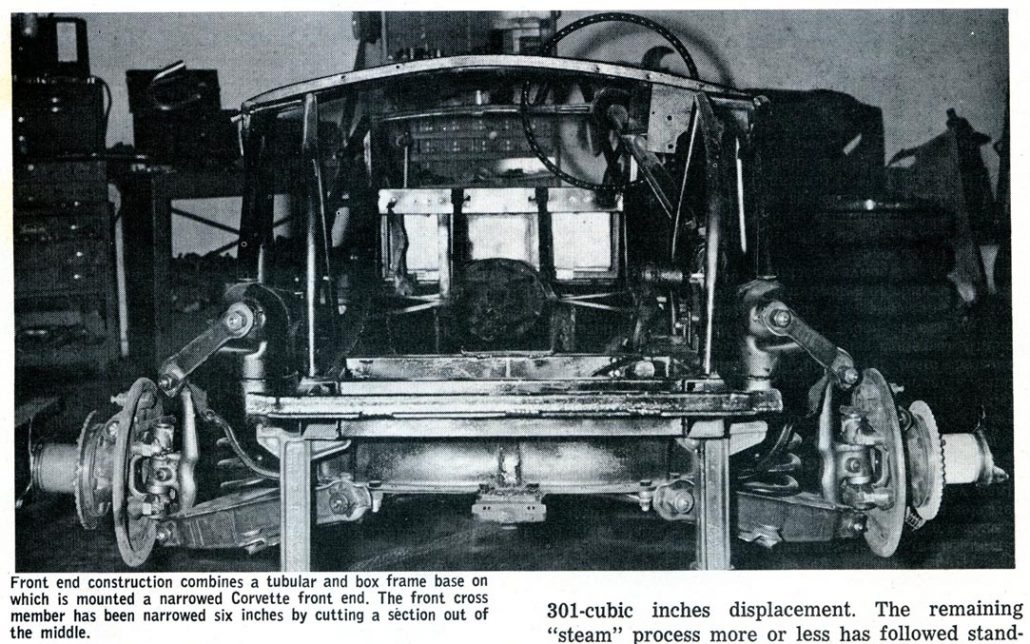 To accommodate a 91-inch wheelbase, a Corvette front cross member was narrowed simply by whittling six inches from its center.