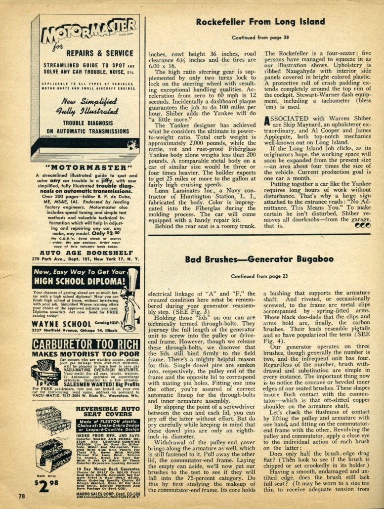 Let’s have a look at what Auto Age had to say in ’53 about the debut of the Rockefeller Yankee.