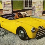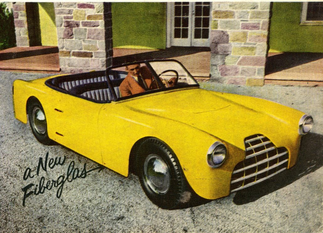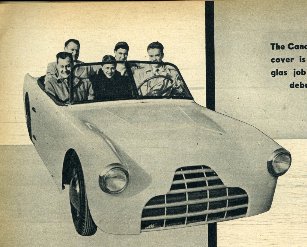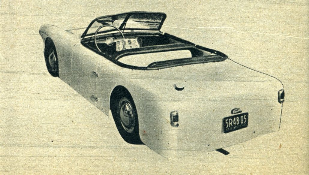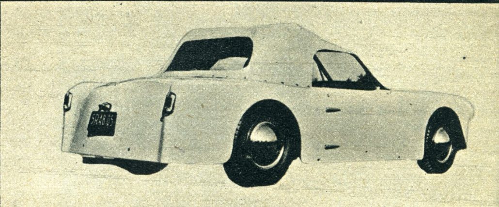 Install a stock Ford V8 engine in a practically collision-proof fiberglass body; achieve speeds upwards of 100 mph and then sell this remarkable job at a price to fit almost any budget – about $2495. Do that and you’re boud to raise the pulse of any car enthusiast. It looks familiar too – somewhat like the ’49 Ford.