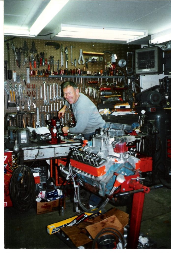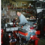 Roger used a ’51 Henry J chassis and Z’d the frame 6 inches front and rear – without changing the length / wheelbase of car. He also set the motor fairly far back. Dean Bailey did most of the welding on the frame and Roger watched and learned the skill on this frame.