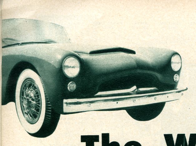 One of the most interesting developments in the American-built sports car scene is the newly designed Fiberglass automobile shown on our cover and on these pages. B. R. “Woody” Woodill, ex Dodge dealer turned sports car manufacturer, has plunged into a project unique in its conception in that stock Detroit parts are combined with a clean, brand-new sports car body.