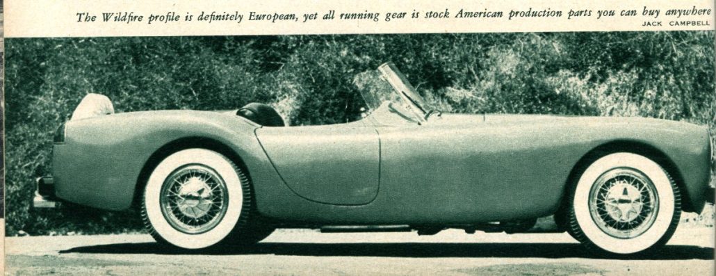 Woodill, at a time when most people would have been satisfied with the mounting pile of orders for his original car, shut down his production line and gambled on his new body design. Original in every respect, the new Wildfire has caught the imagination of the American taste, causing considerable excitement in automotive circles, so Woody’s gamble seems to have been worth the effort.
