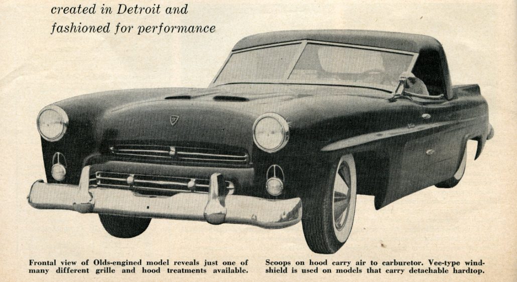 It’s interesting as you review styling of fiberglass cars in the early to mid ‘50s. As you go from West to East, the styling becomes, typically, more “Detroit-Like,” and that’s probably predictable and would occur for a variety of reasons. One reason would be to create a car more attuned to the Detroit buying public. Another might be just the lack of proximity of sports and race cars that would have been intensely in Southern California and not in the Midwest (but they would have been in some numbers in the Northeast..)