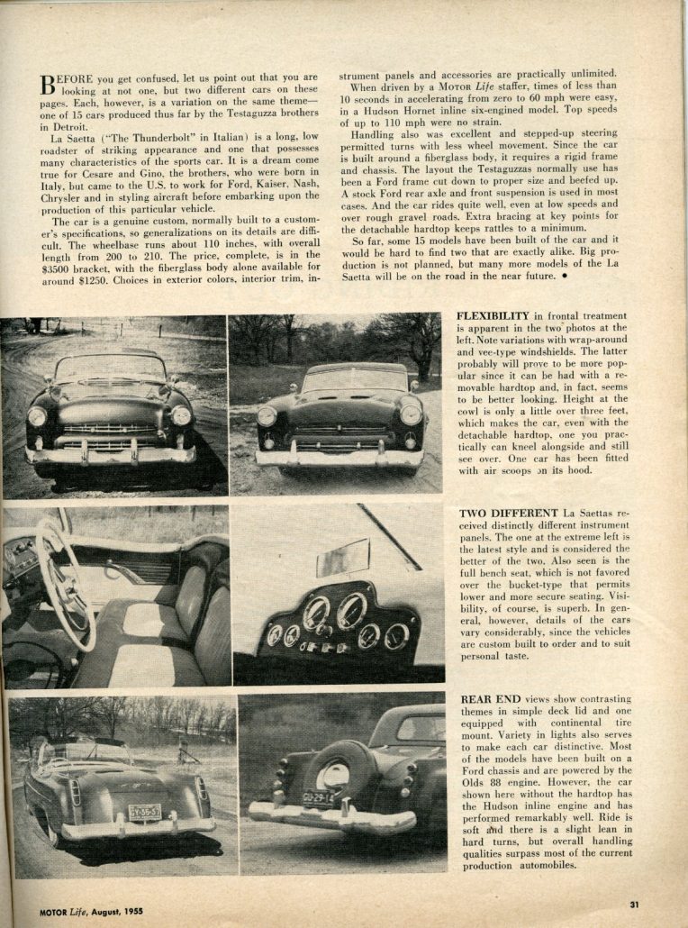I;m the guy who wrote the article on La Saetta featured on your FF site! Wow, it was strange seeing a piece I wrote all those years ago when I was Detroit Editor for Motor Life Magazine. I was a native Detroiter who was involved in one way or another with the auto industry for 30 years, 1947-1977. For a long time I was the only reporter on the auto beat who had ever actually worked in an auto plant (Chrysler Highland Park & the old Dodge Main in Hamtramck). I began my journalism career in October, 1947 when I was a college freshman on the GI Bill on The Wage Earner, a labor paper that concentrated on the car industry.
