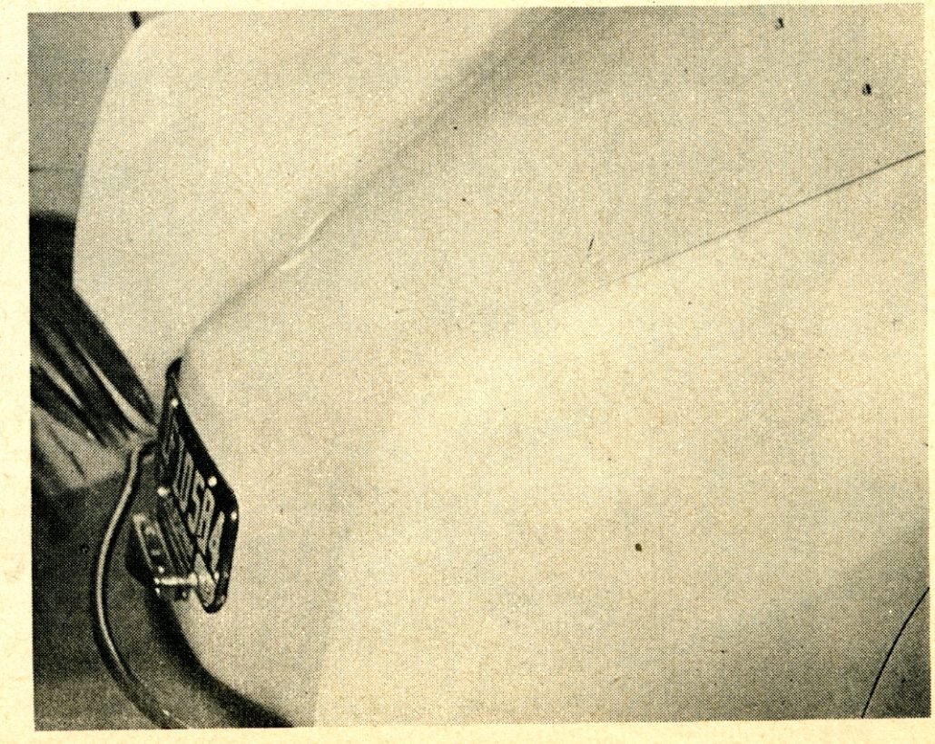 The body was quite smooth when removed from the mold, but the usual air bubbles had to be eliminated – a slow and tedious process. After this came the problem of installing the unit on the car, cutting out the hood, fender, headlight, and grille openings.