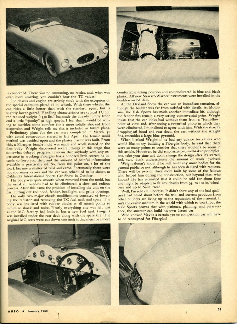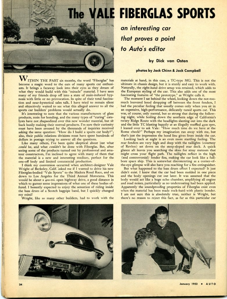The Vale Fiberglas Sports (Auto Speed & Sports, January 1953)
