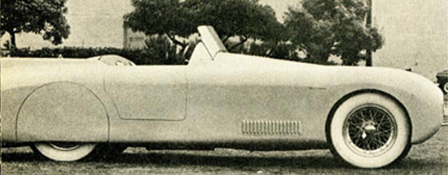 Vale Wright was inspired by the 1947 Cisitalia 202 SMM Spider Nuvolari and chose to create a fiberglass version of this car – as close as possible to the original design. And I think he did a darn good job. Click here to learn more about the design heritage of this car.