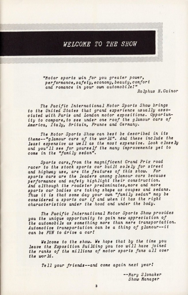 Pac. Intl. Motor Sports Show, 1954, Pgs. 2 & 3 Published April 29, 2013 at 657 × 1030 in The Vale Sports Car and the 1954 Pacific International Motor Sports Show