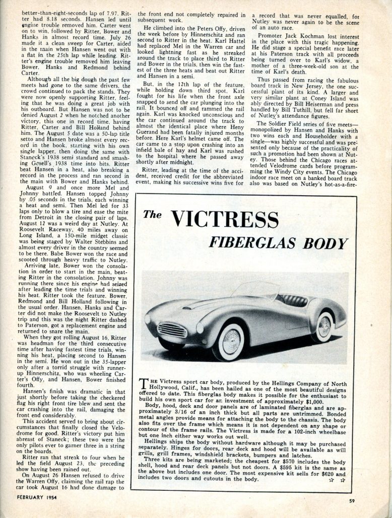 The article today appears in the February 1954 issue of Car Life. Victress was just about to make the transition from a dedicated dealer handling their sales which was “Hellings” to handling the expansion of their company and sales on their own. After all, Doc Boyce-Smith had just partnered with Merrill Powell in early 1954 so the sky was the limit and all things seemed possible.