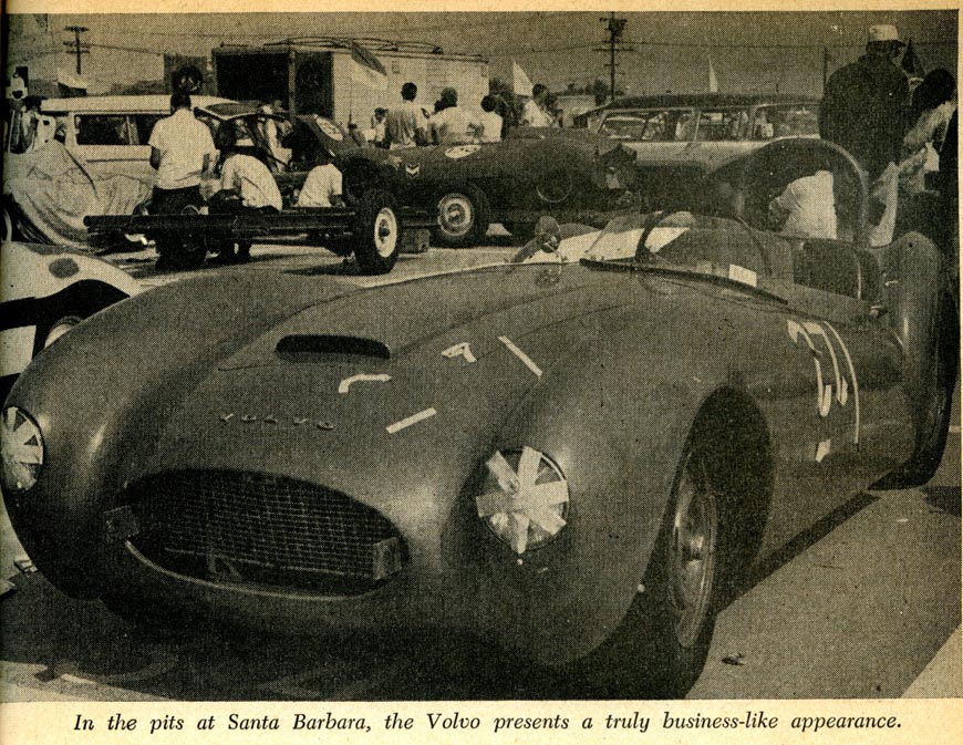 Caption: “In The Pits At Santa Barbara, The Volvo Presents A Truly Business-Like Appearance.”