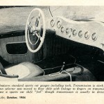 Caption: Cockpit features standard sports car gauges including tach. Transmission is stock Dynaflow, but column selector was moved to floor shift with linkage to fingers on transmission case, which gave a sports car shift “feel” though transmission is usually in drive position.