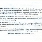 I searched where I could and located as much information as possible. Still no Track Kraft company or any records of people who said they had bought their body at “Track Kraft.”. The trail seemed to be getting cold. Finally, luck prevailed, and I located a pristine copy of a Track Kraft brochure. For those of you interested how and where I found it, click on the following link for a 3 minute video. Click on the center of the screen where there is a “triangle” to begin.