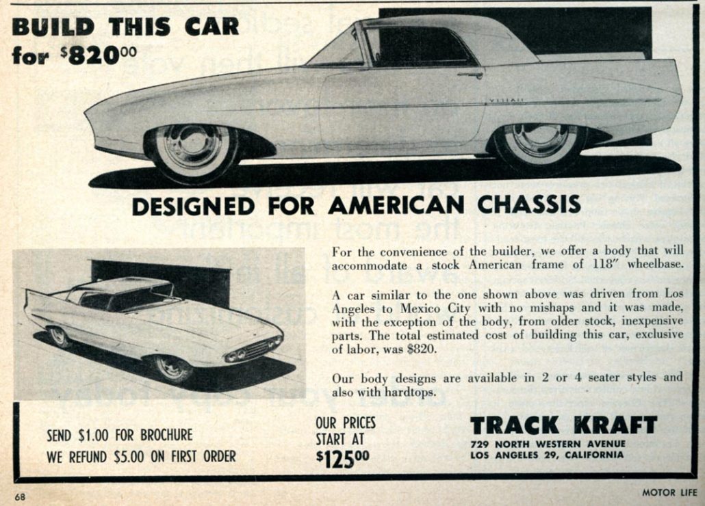 Since 2007, Paul and I have kept in touch about various cars and exchange information frequently. Recently, he sent me an ad from a company called “Track Kraft” and challenged me to locate more information about it. Today is the first step in the results of that challenge.