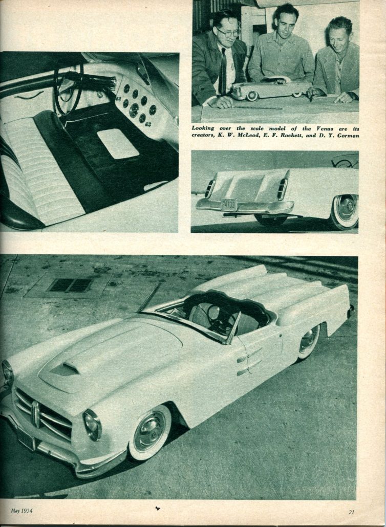 Let’s take a look at the first article that appeared about the Venus from the May 1954 issue of Motor Trend.