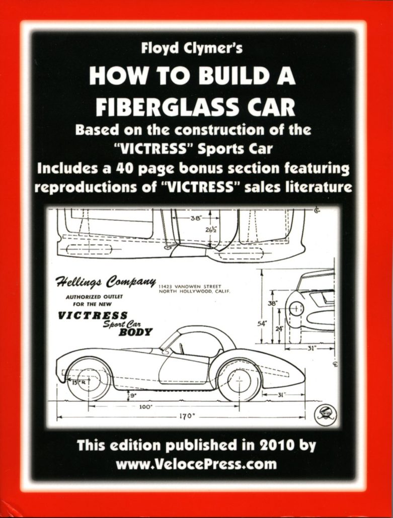 Fiberglass friend Erich Schultz recently shared with me that he purchased a book from Veloce Press that was a reprint of the 1950’s Victress book on How to Build a Fiberglass car. With a bit of sleuthing, I found the following information concerning this publishing company: