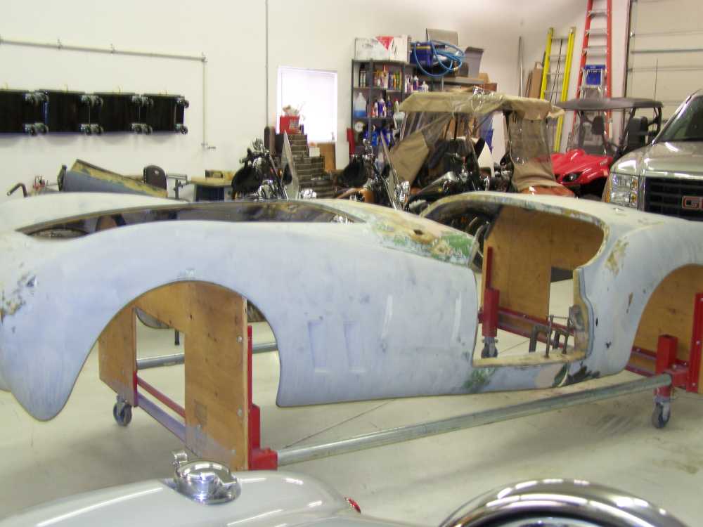 As I mentioned in our phone conversation the frame I disposed of showed no signs of ever being completed but the body may have been on a previous chassis. Most of the body mount straps are intact and the original door hinges and hood hinges are good. The trunk hinges appear home built and the trunk lid has no gelcoat. It will take a couple of emails to send the pictures.