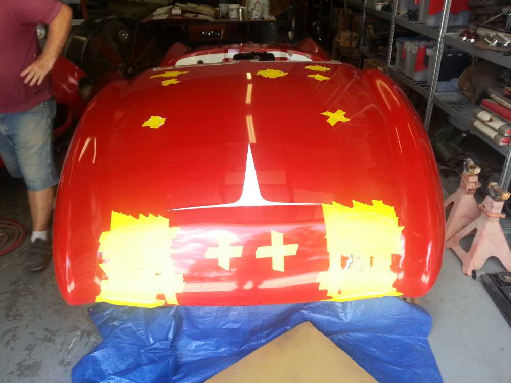 In the photos shown below, you can see the prep work that Craig Johnson had to do in order to use another one of our Victress S1A roadsters (slated for restoration) as the “plug” for the mold. And…each of the steps leading to creating the mold, pulling the mold, and getting it ready to lay up the first part.