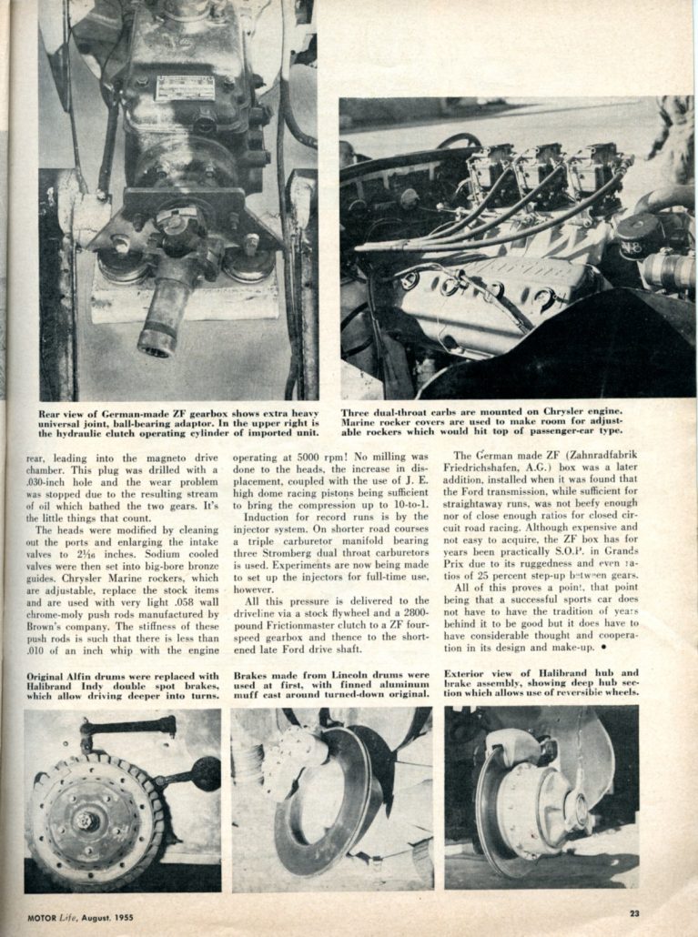 I can’t imagine how excited he and the folks at Victress were back then. And here it was in August 1955, Motor Life was not only reporting on the achievement from two years ago, but featuring the “World’s Fastest Sports Car” again in its latest form – poised to continue its success in a newly modified form.
