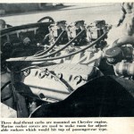 Induction for record runs is by the injector system. On shorter road courses a triple carburetor manifold bearing three Stromberg dual throat carburetors is used. Experiments are now being made to set up the injectors for full-time use, however.