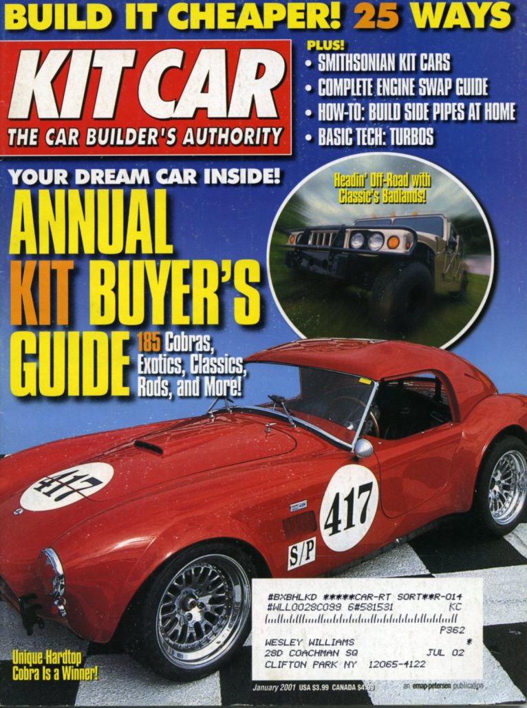 The kit car, after being the butt of too much humor at the hands of the mainstream car enthusiasts and press, proudly had its day in the sun and has taken its rightful place among America’s automotive treasures. The next time you’re in Washington, D.D., stop at the Smithsonian and take a look at the gleaming red Glasspar. This is where it all began!