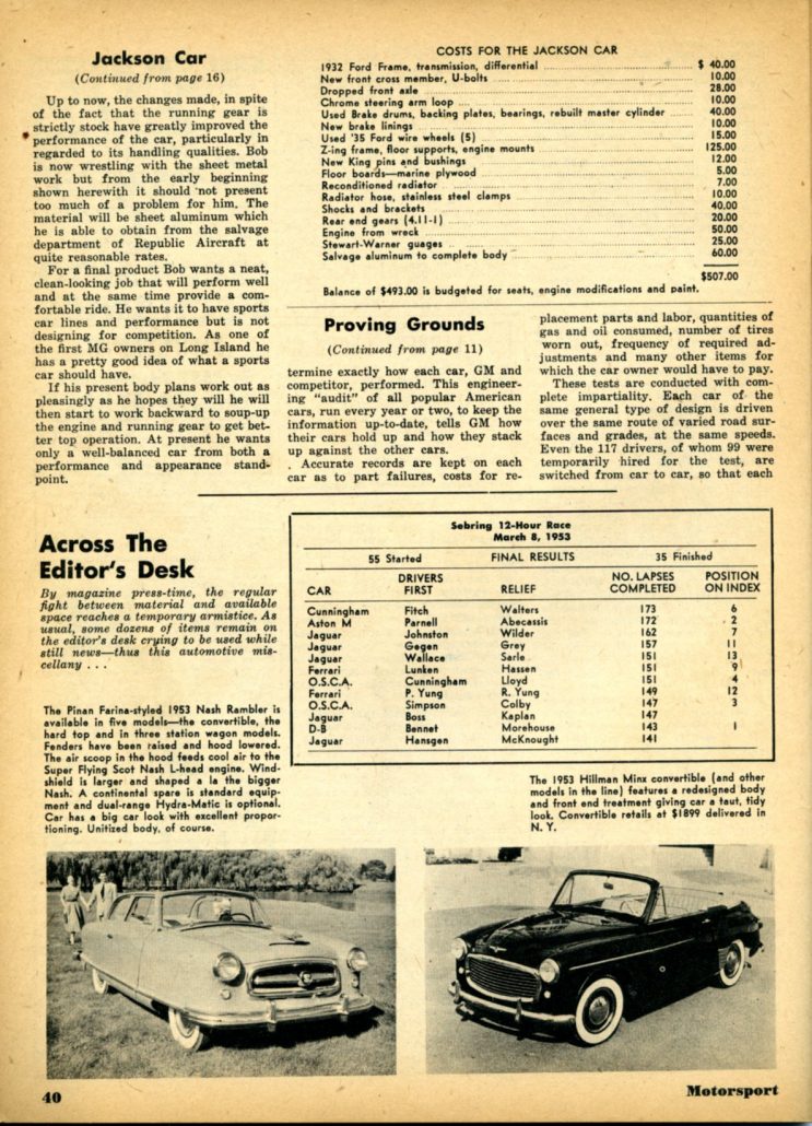 Let’s have a look and see what a completely different magazine – Motorsport – published about Robert Jackson’s sports car in the making in June 1953.